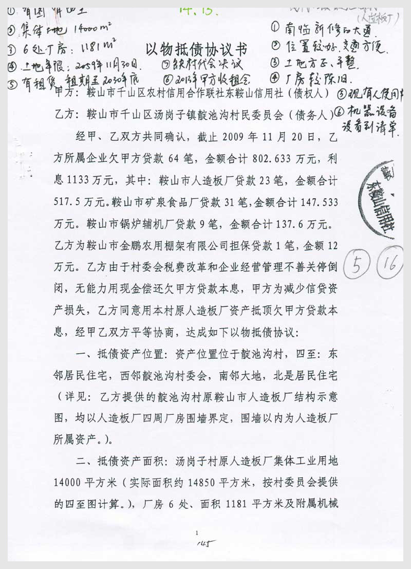 14-15號 靛池溝村原鞍山市人造板廠廠房及集體工業用地使用權