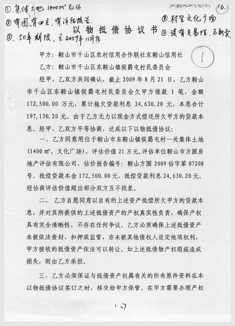 16號 鞍山市東鞍山鎮侯爵屯村集體土地使用權