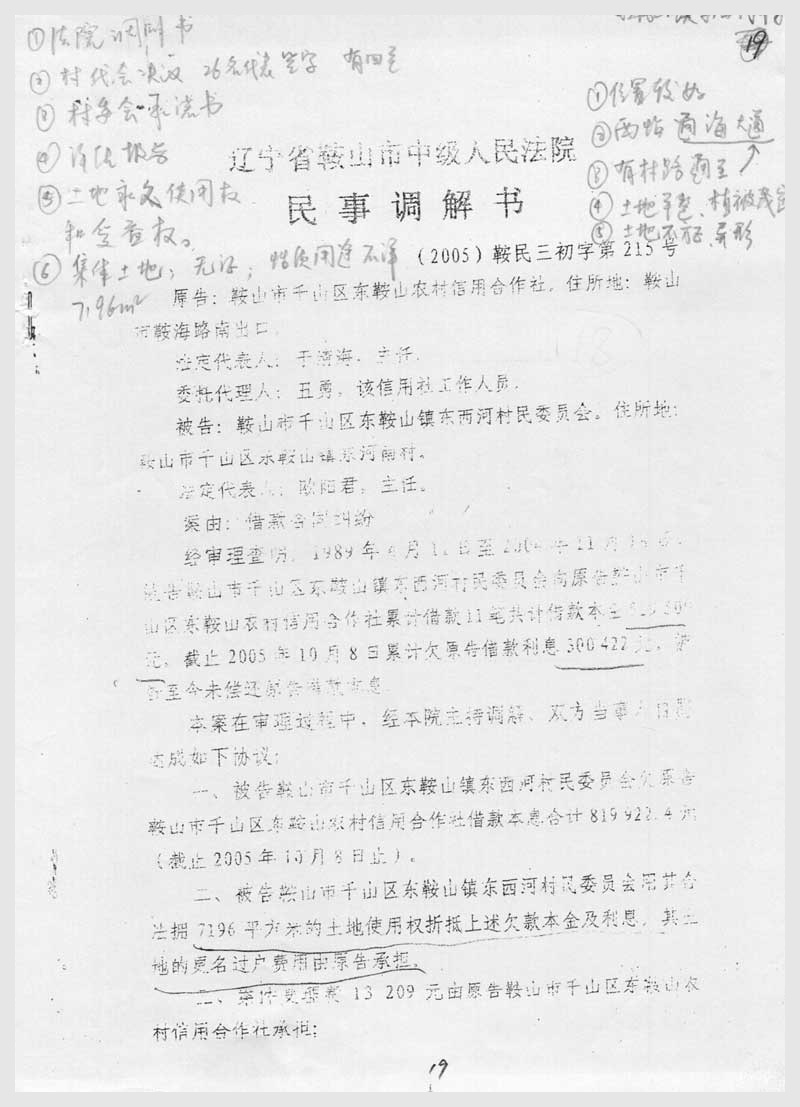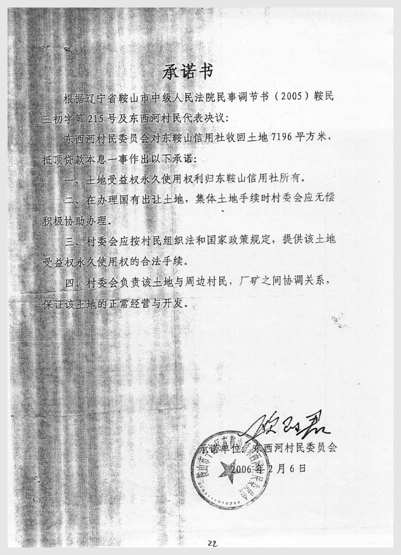 19號 鞍山市千山區東鞍山鎮東西河村集體土地使用權