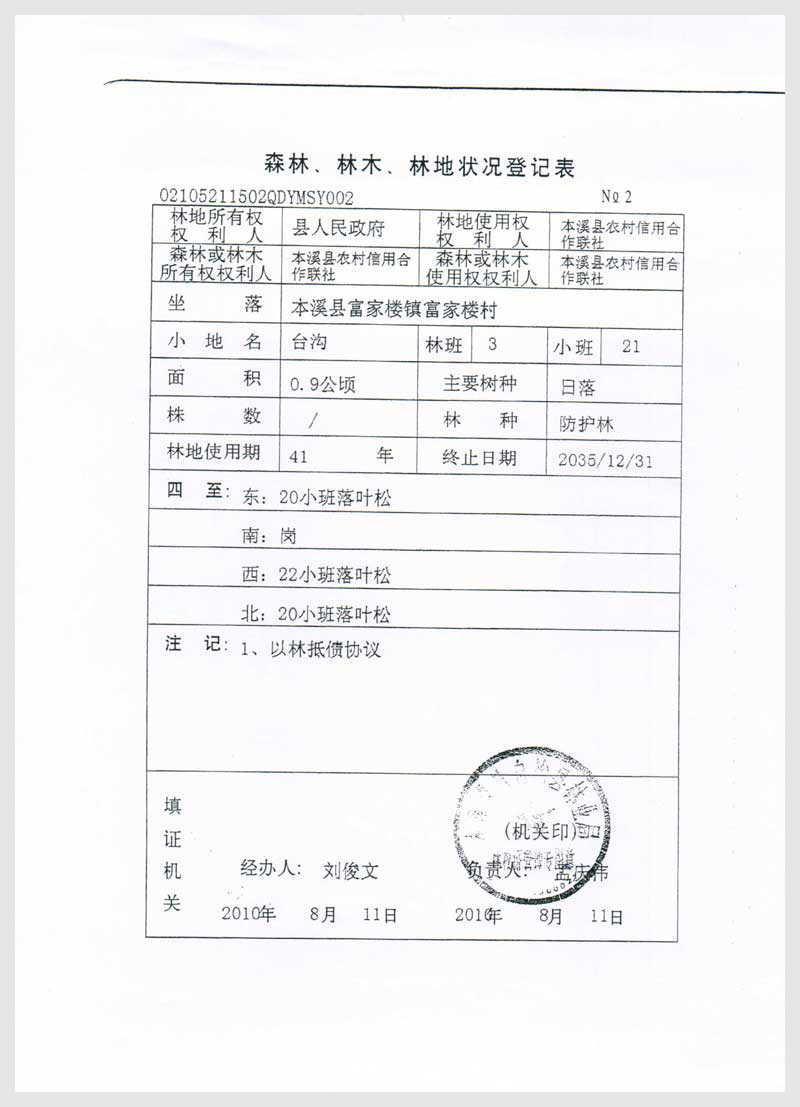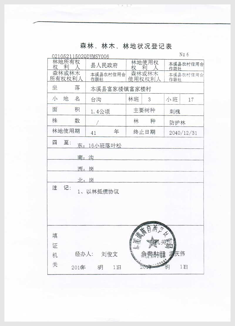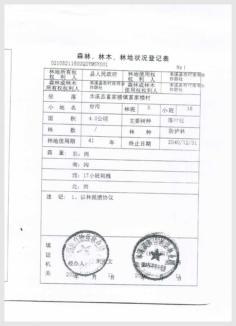 44號(hào) 本溪縣富家樓鎮(zhèn)富家樓村落葉(防護(hù)林)