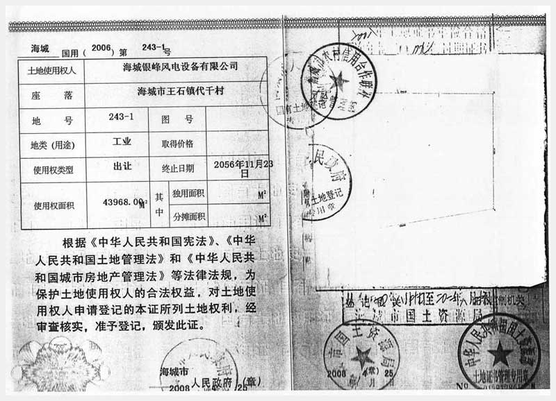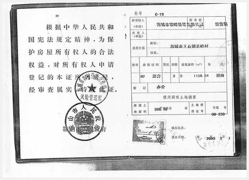 45號 海城市王石鎮房產及附屬物和土地使用權