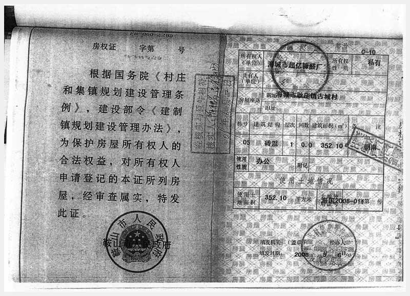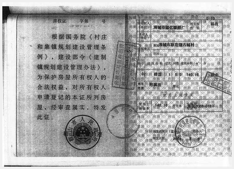 106號 海城市耿莊鎮古城村的國有土地使用權及廠房