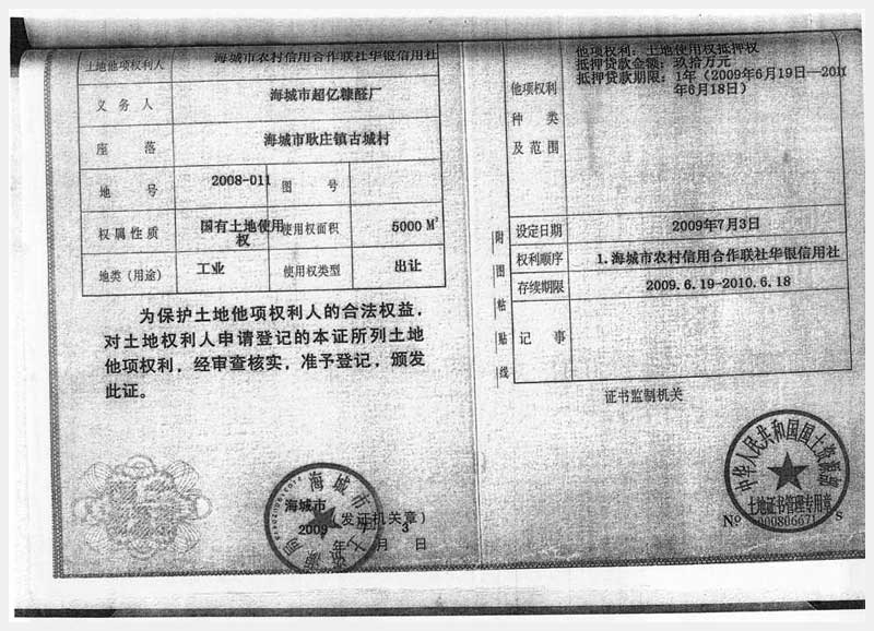 名稱:海城市耿莊鎮古城村的國有土地使用權及廠房 面積:土地:5000㎡、廠房:1860.69㎡ 瀏覽次數:2428