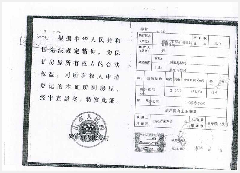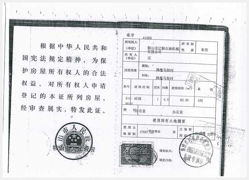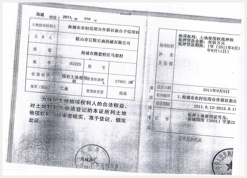 名稱:遼鞍石油所有的位于海城市騰鰲馬架村房產5處及國有土地使用權 面積:房產:4302.53㎡、土地:17937.25㎡ 瀏覽次數:2569