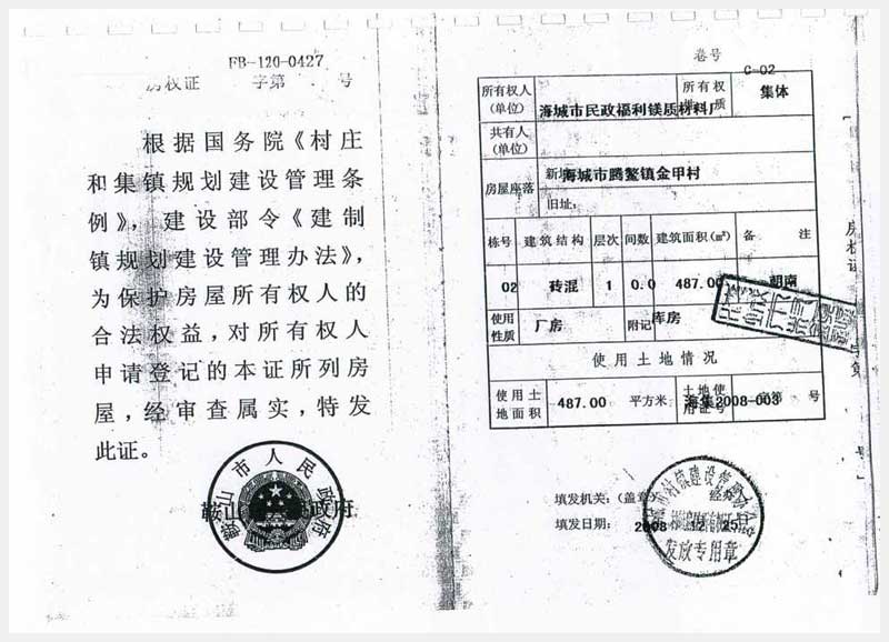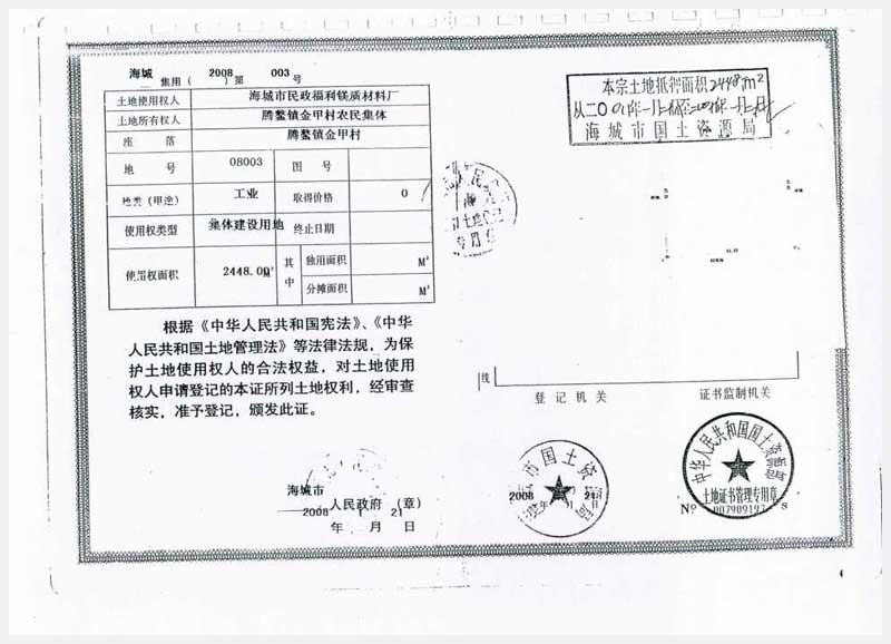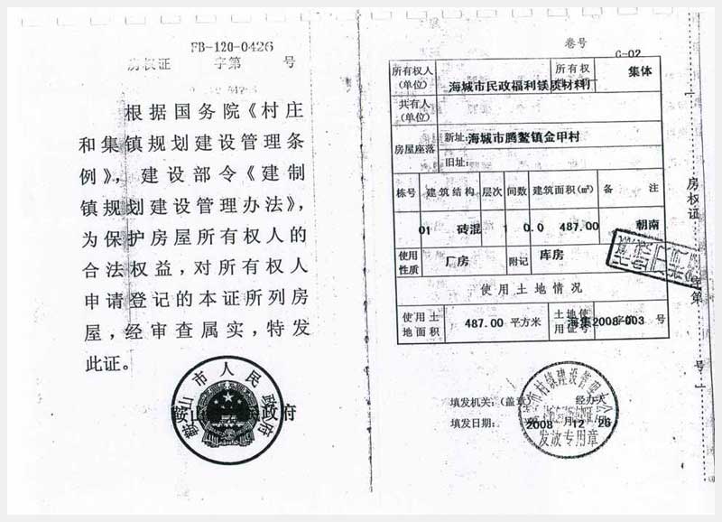 322號 位于海城市騰鰲鎮金甲村廠房、 集體土地使用權