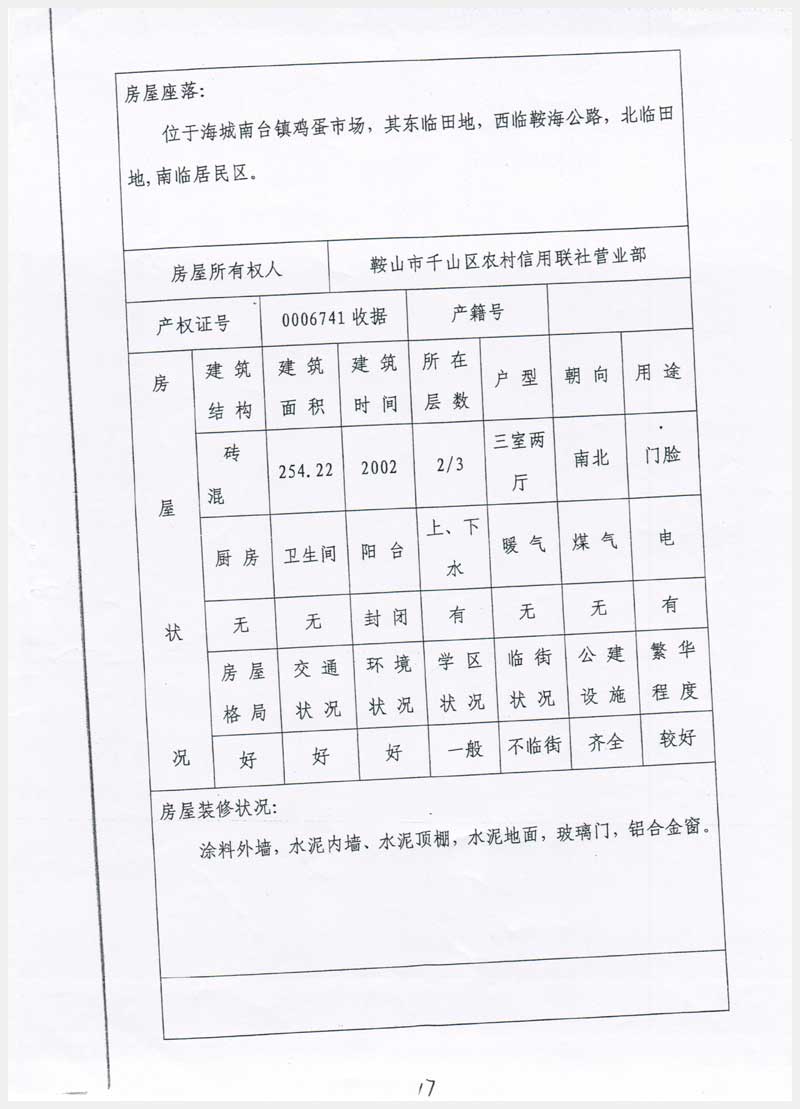 地址:海城南臺鎮雞蛋市場 標的號:37