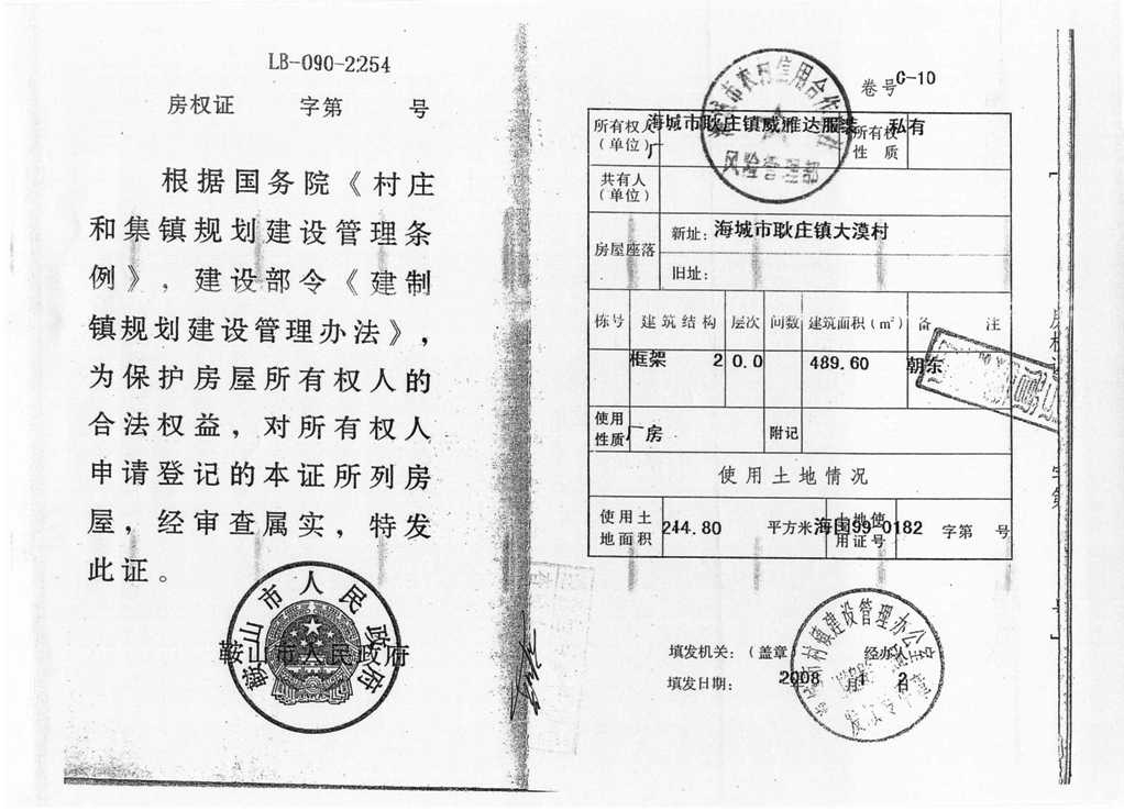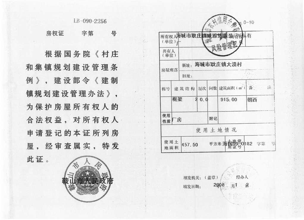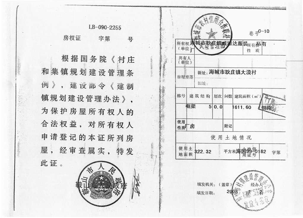 49號 海城市耿莊大莫村房產、國有出讓土地使用權