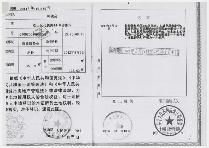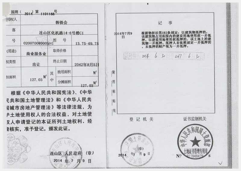 地址:遼寧省葫蘆島市連山區(qū)化機(jī)路14-6 標(biāo)的號(hào):1
