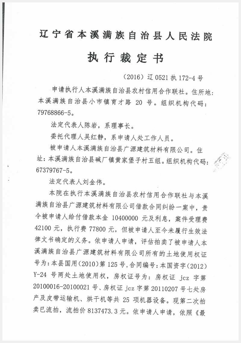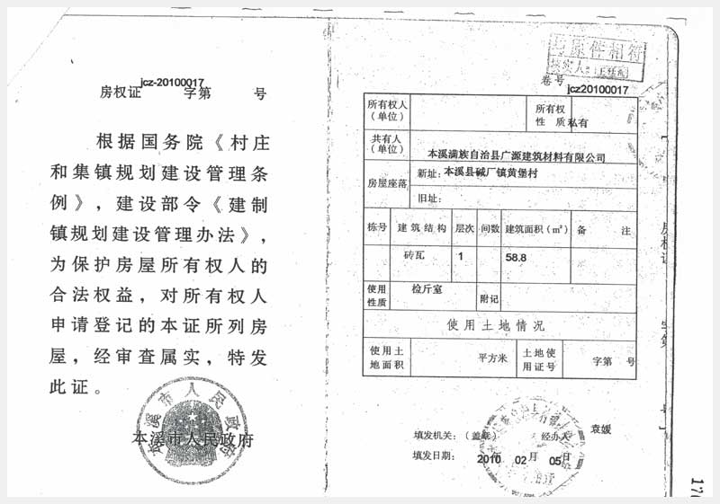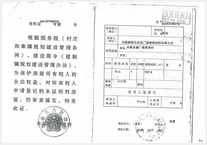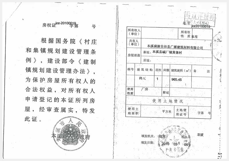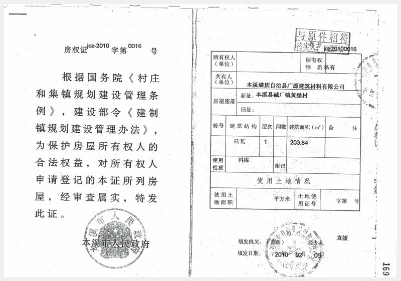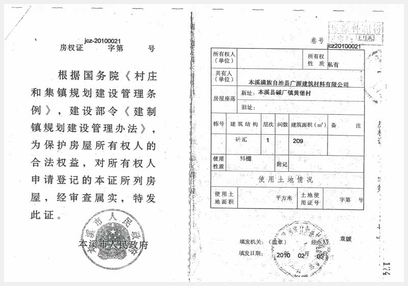 名稱:本溪縣堿廠鎮黃堡村房產7處、土地2處及設備25項 面積:房產:3241.16㎡、土地:9290㎡ 瀏覽次數:1894