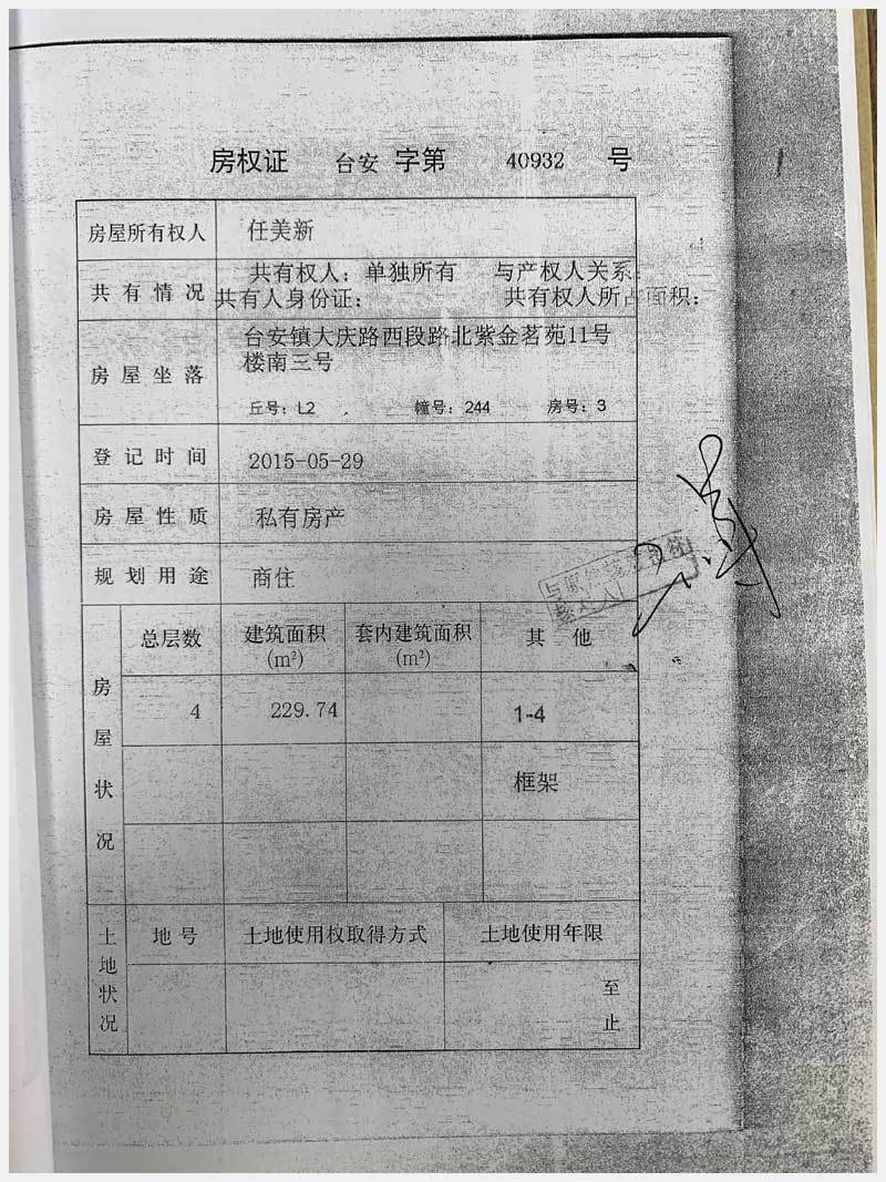 名稱:臺安鎮大慶路西段北紫金茗苑11號樓南四號 面積:房產:229.49㎡、土地:112㎡ 瀏覽次數:1734
