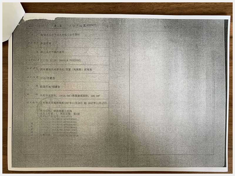 2號(hào) 盤(pán)錦盤(pán)山縣太平鎮(zhèn)杜家村房產(chǎn)及土地使用權(quán)(凌天冷凍有限公司)