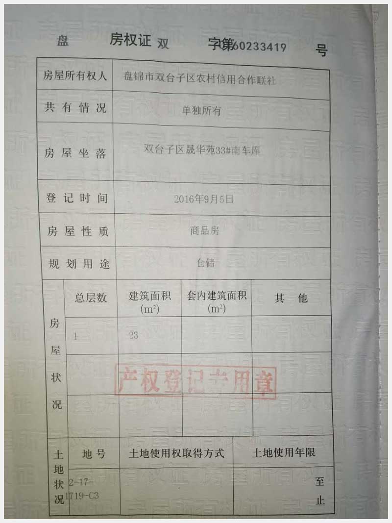 名稱:盤錦雙臺子區紅旗大街北側晟華苑12個倉儲用房(柳軍) 面積:287.04㎡ 瀏覽次數:1609