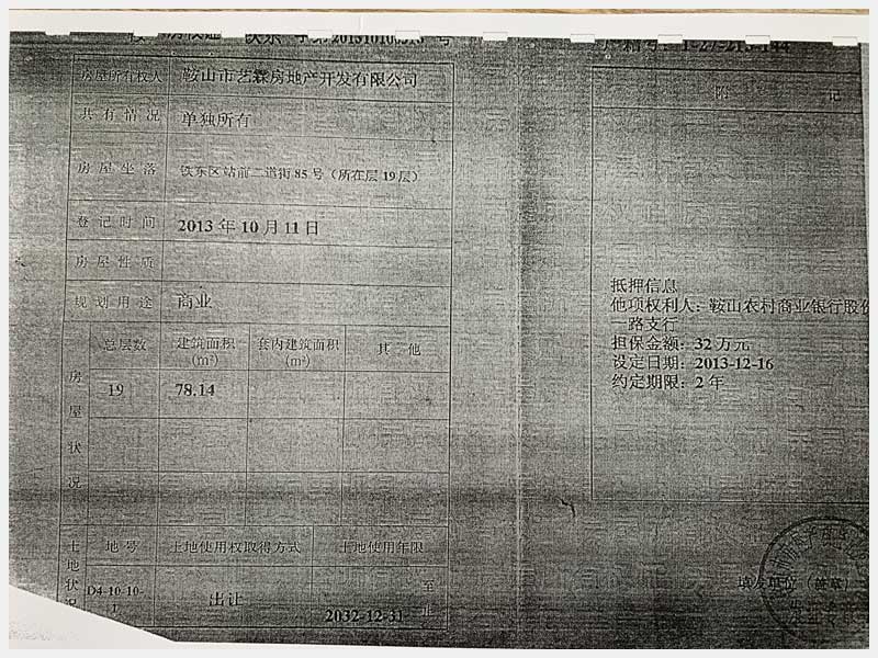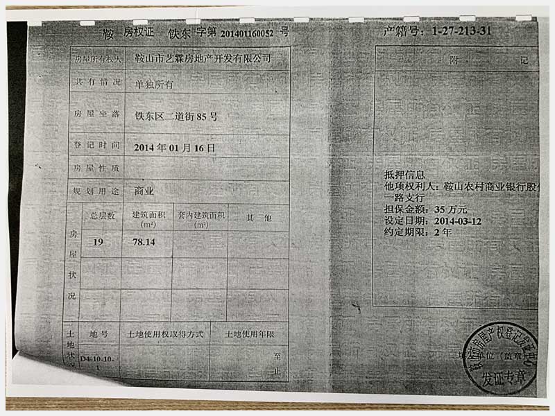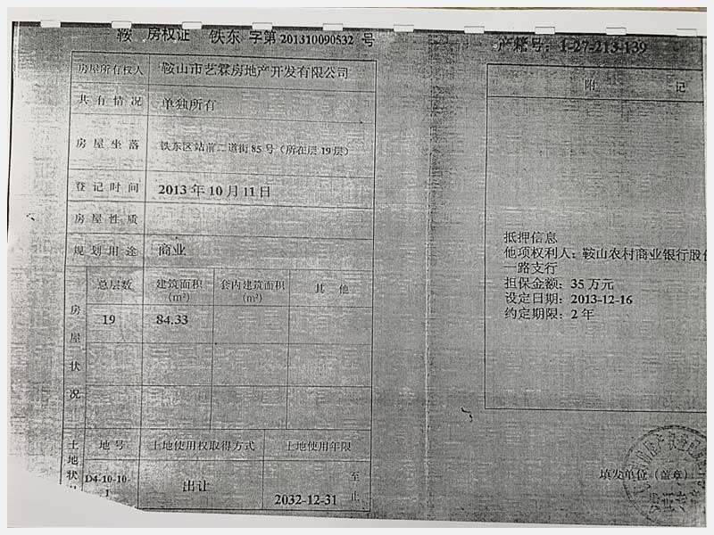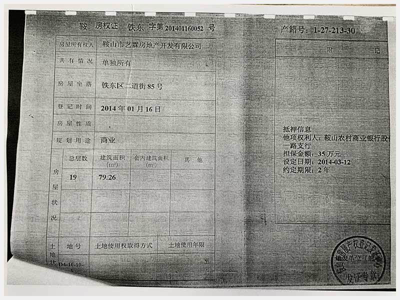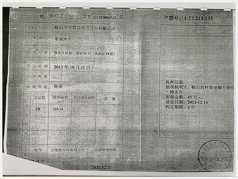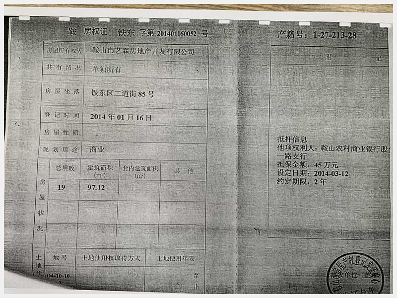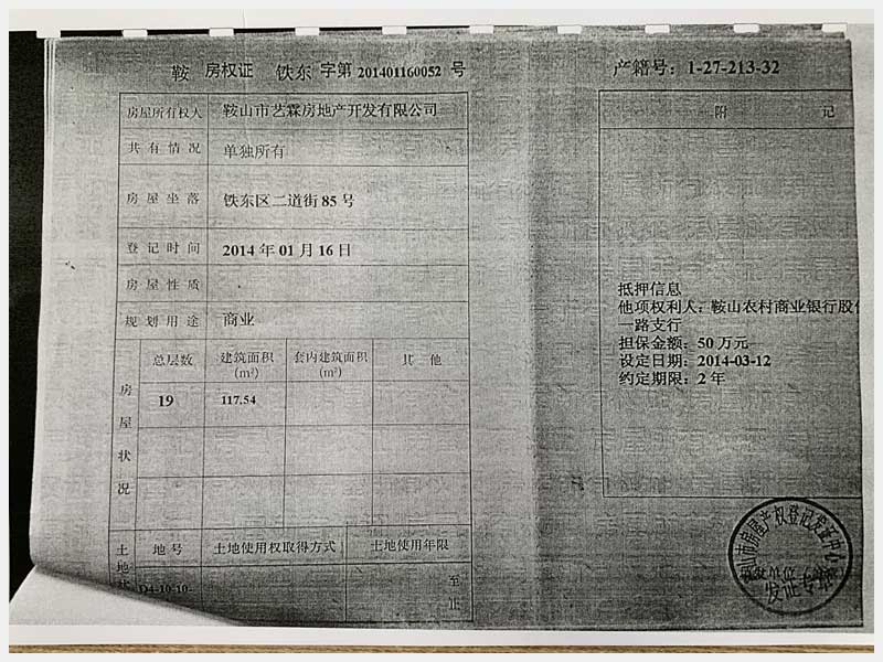 名稱:鞍山市鐵東區(qū)二道街85號房產(chǎn) 面積:1873.32㎡ 瀏覽次數(shù):1570