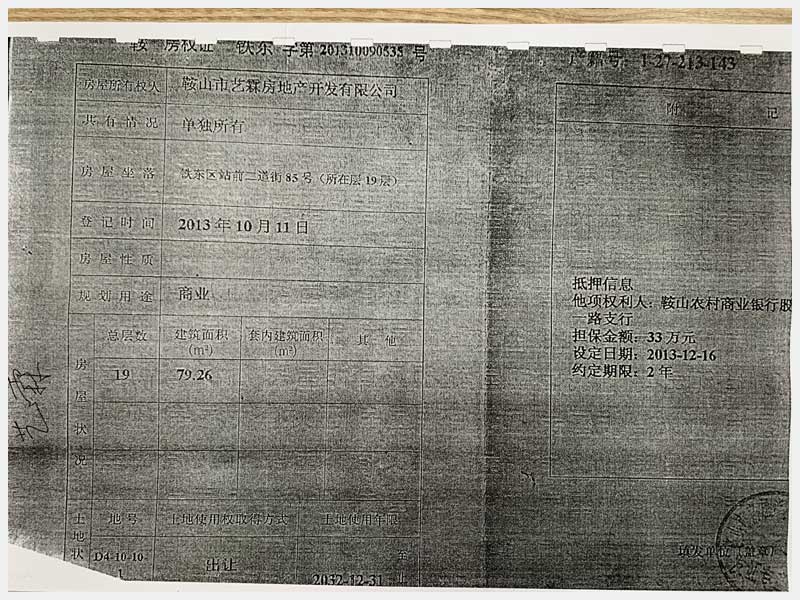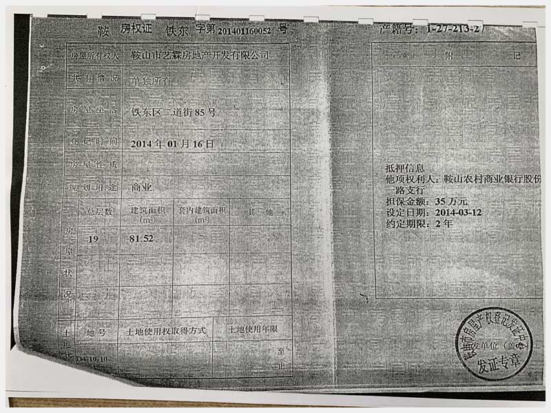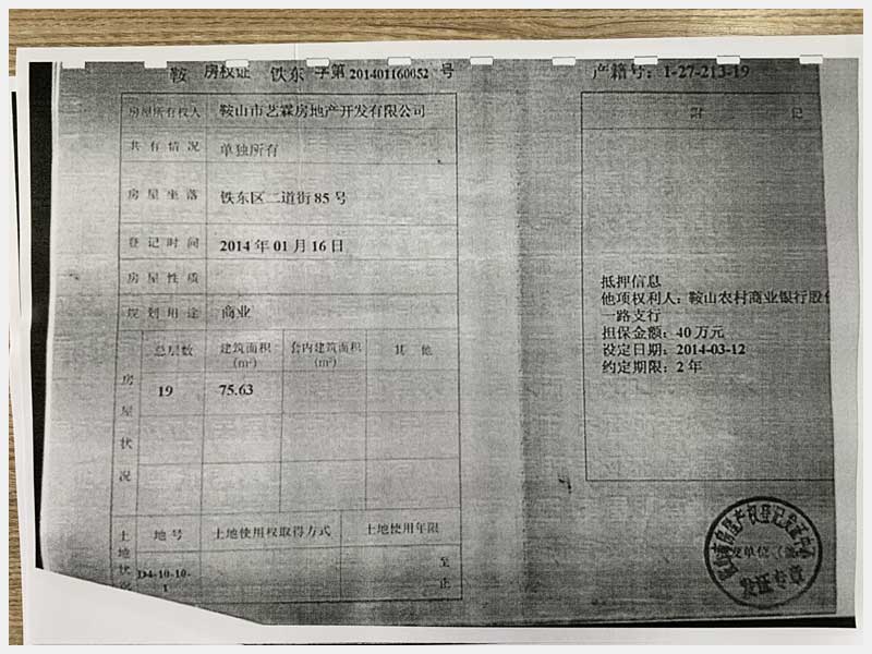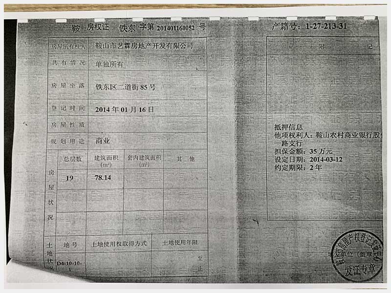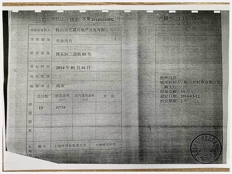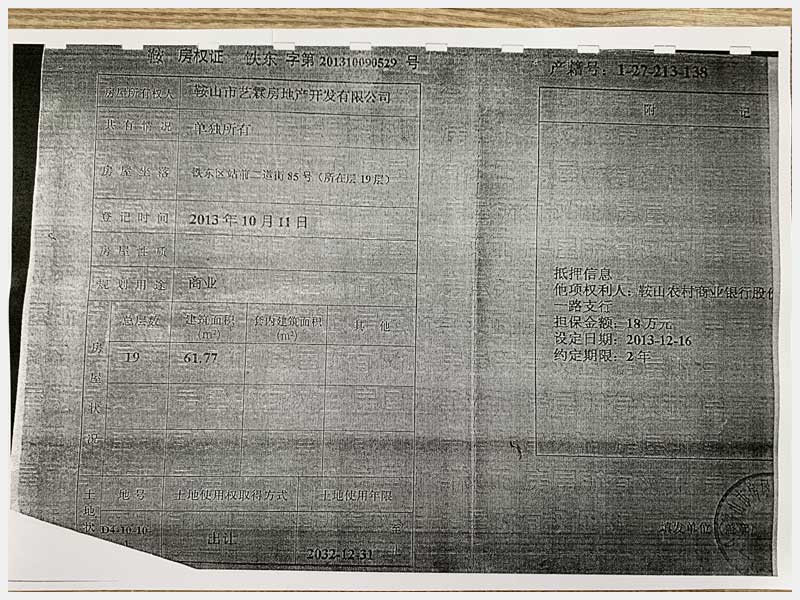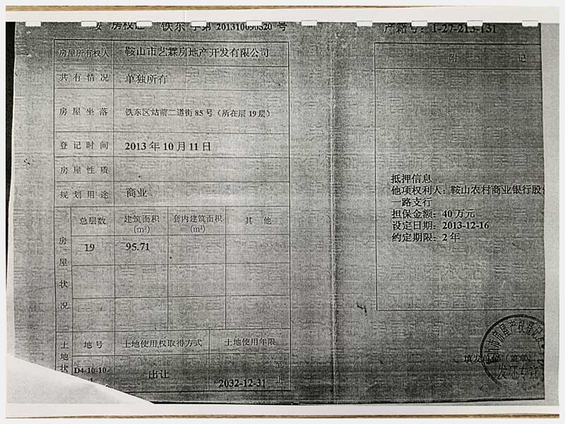 名稱:鞍山市鐵東區(qū)二道街85號房產(chǎn) 面積:1873.32㎡ 瀏覽次數(shù):1570