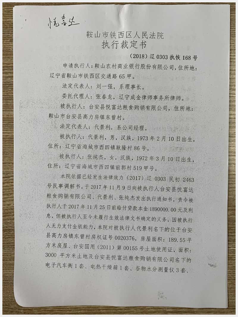 64號 鞍山市臺安縣高力房鎮東曾村房產、土地使用權及機械設備