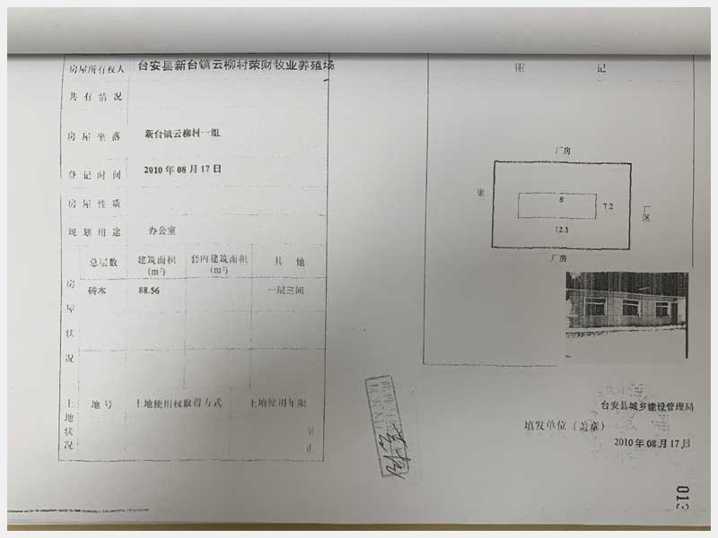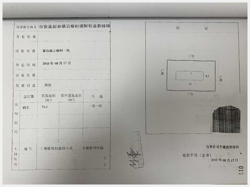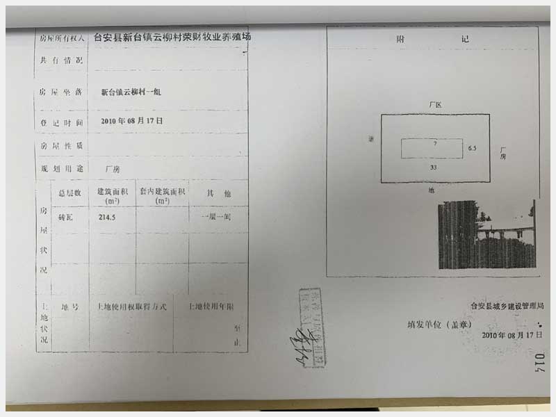 名稱:臺安縣新臺鎮云柳村1組房產 面積:房產:2322.38㎡、土地:2500㎡ 瀏覽次數:1322