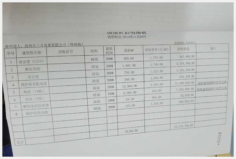 名稱:海城市高坨鎮桑樹村房產、構筑物及其他輔助設施 面積:房產:3602.3㎡、雞舍:20960㎡ 瀏覽次數:1524