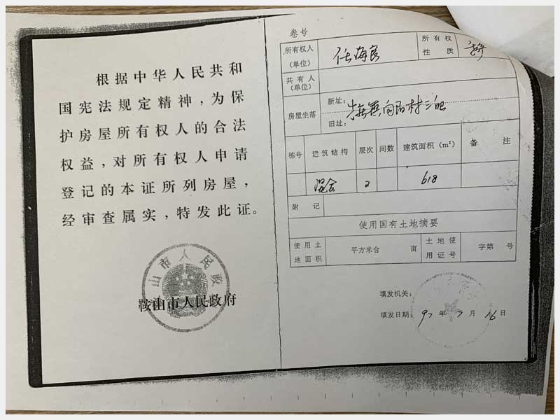 120號 海城市牛莊鎮向陽村三組房產及國有土地使用權