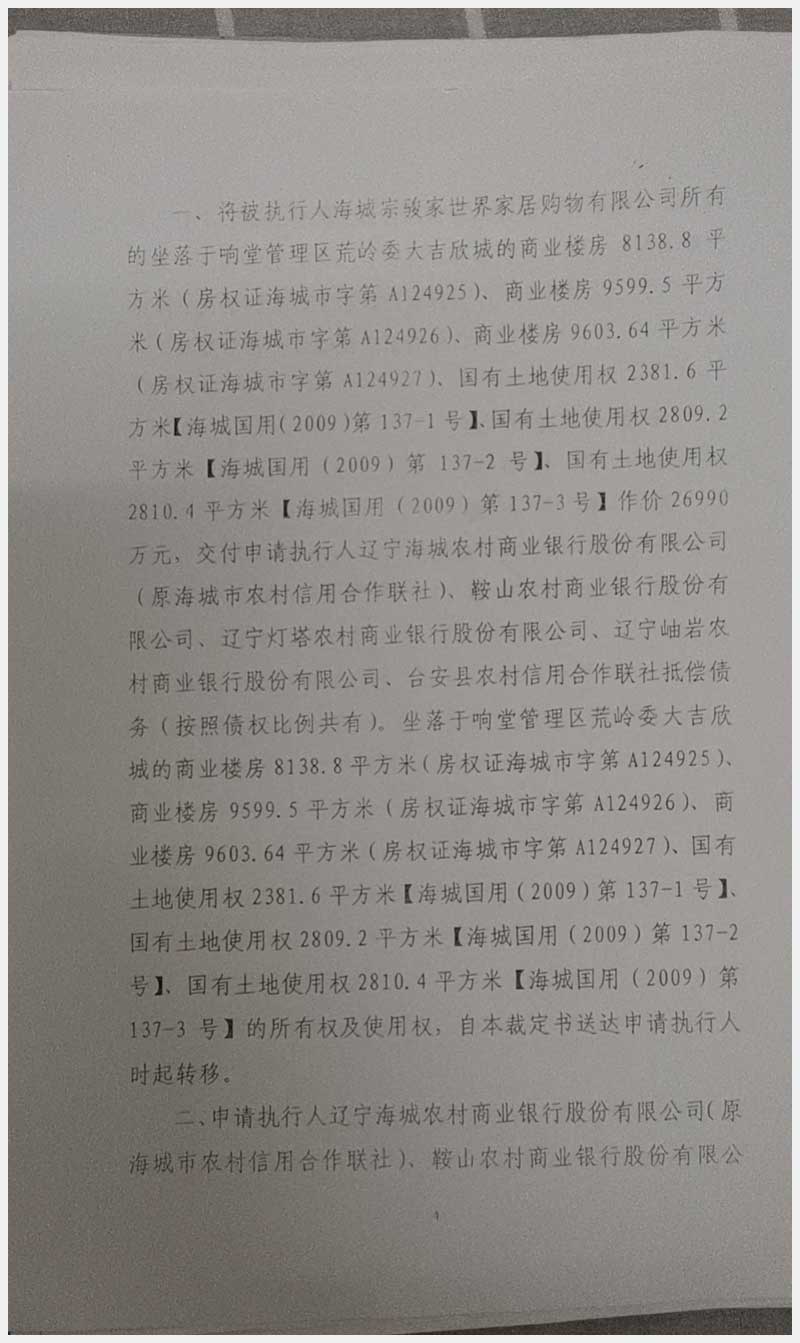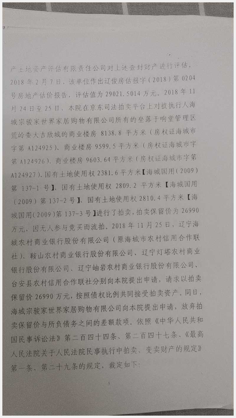 135號 海城宗駿家世界所屬的位于海城市響堂管理區荒嶺委大吉欣城商業樓房及國有土地使用權