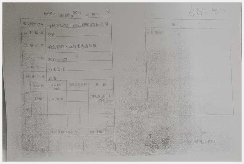 名稱:海城宗駿家世界所屬的位于海城市響堂管理區荒嶺委大吉欣城商業樓房及國有土地使用權 面積:房產:27341.94㎡、土地:5619.6㎡ 瀏覽次數:1527