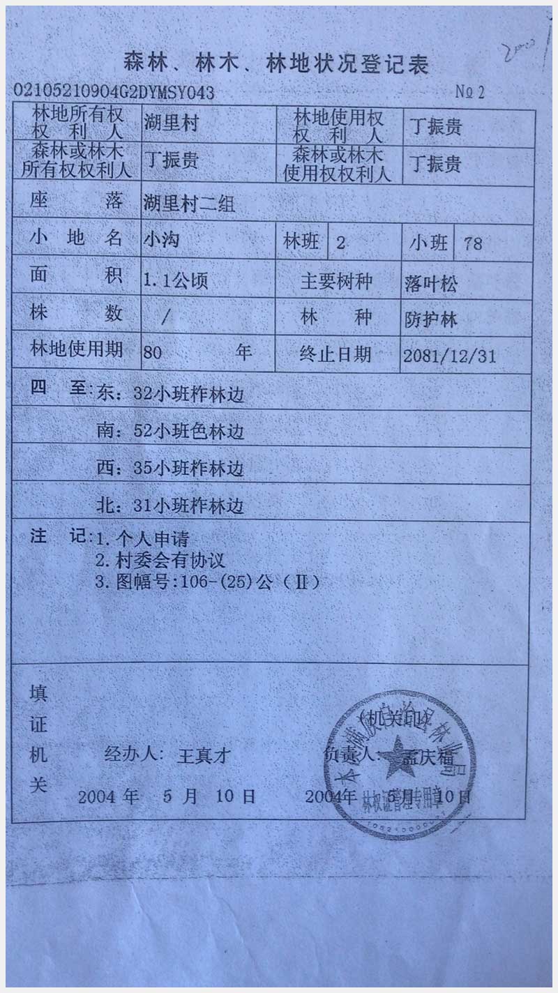 78號 本溪滿族自治縣東營坊鄉湖里村二組紅松落葉林