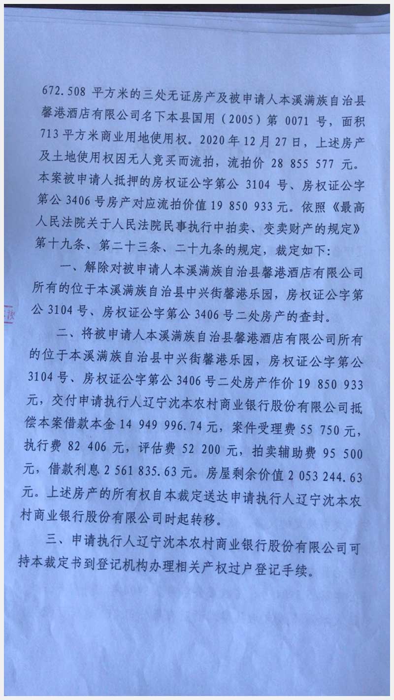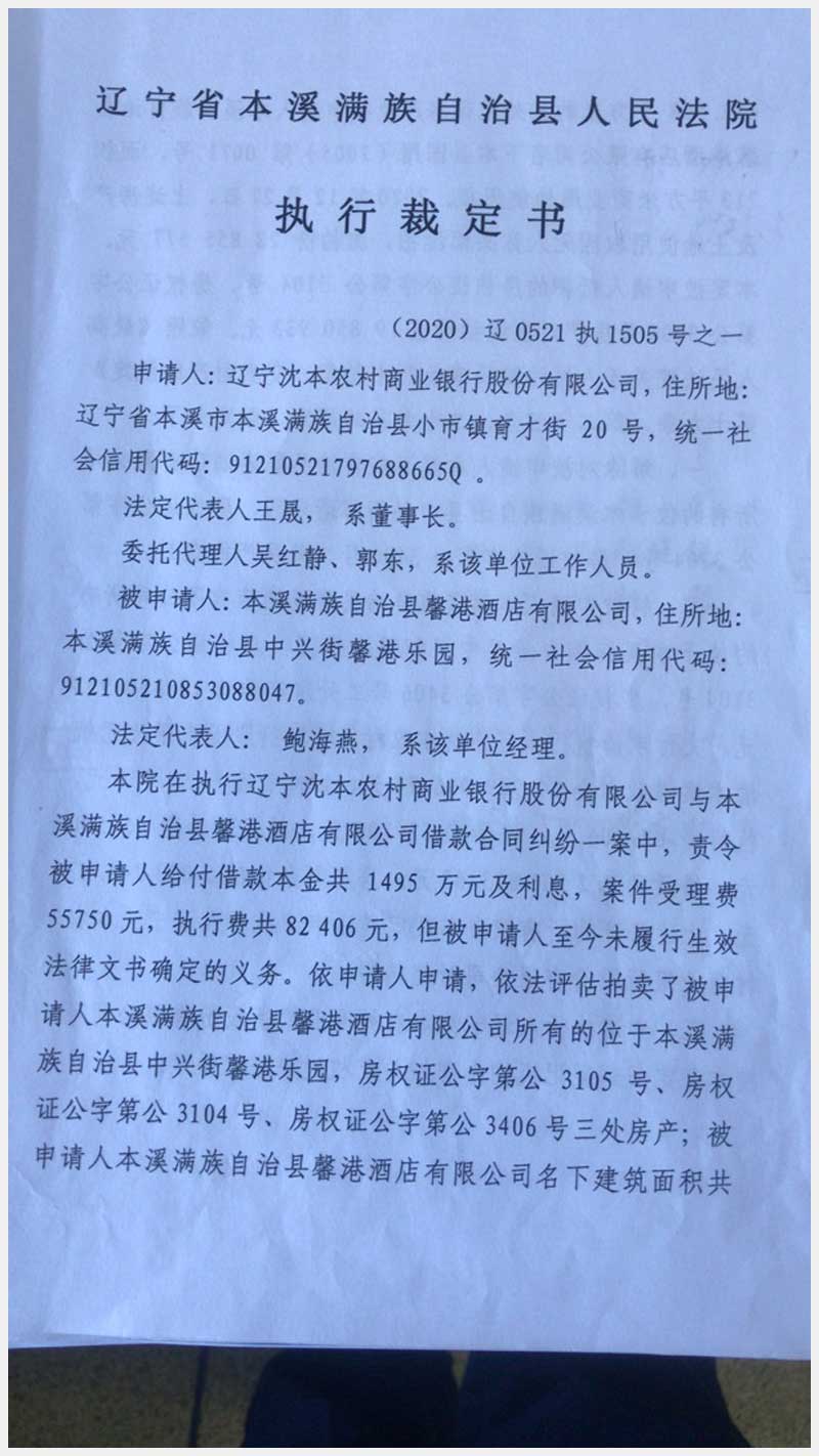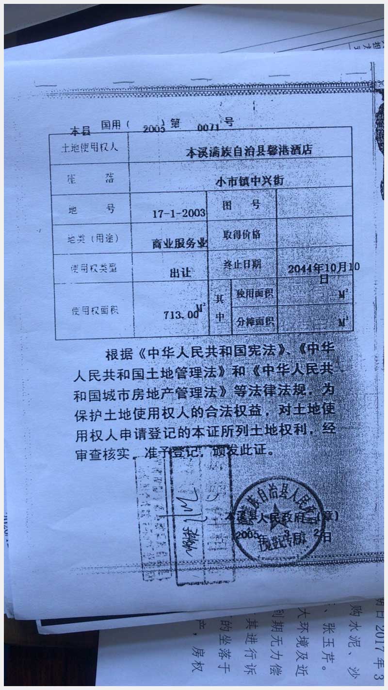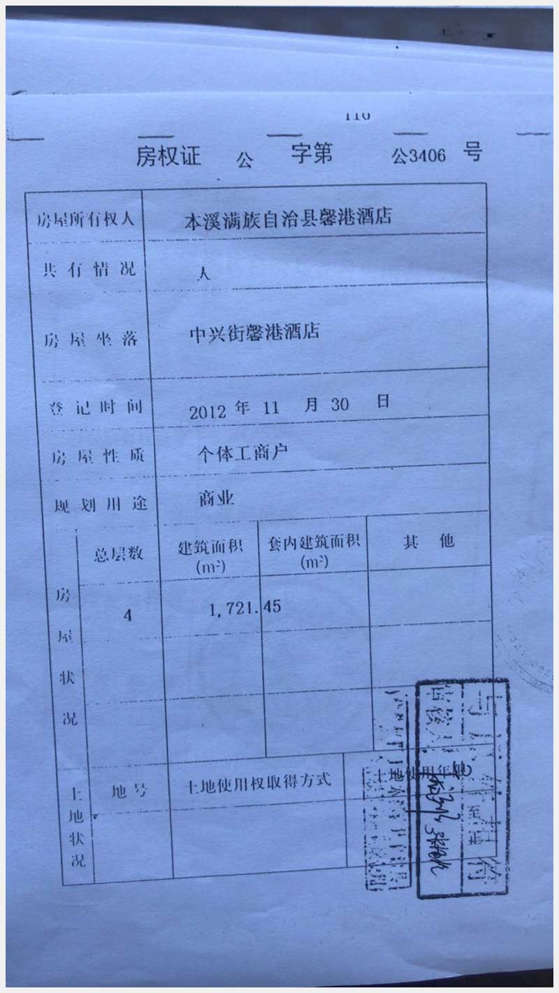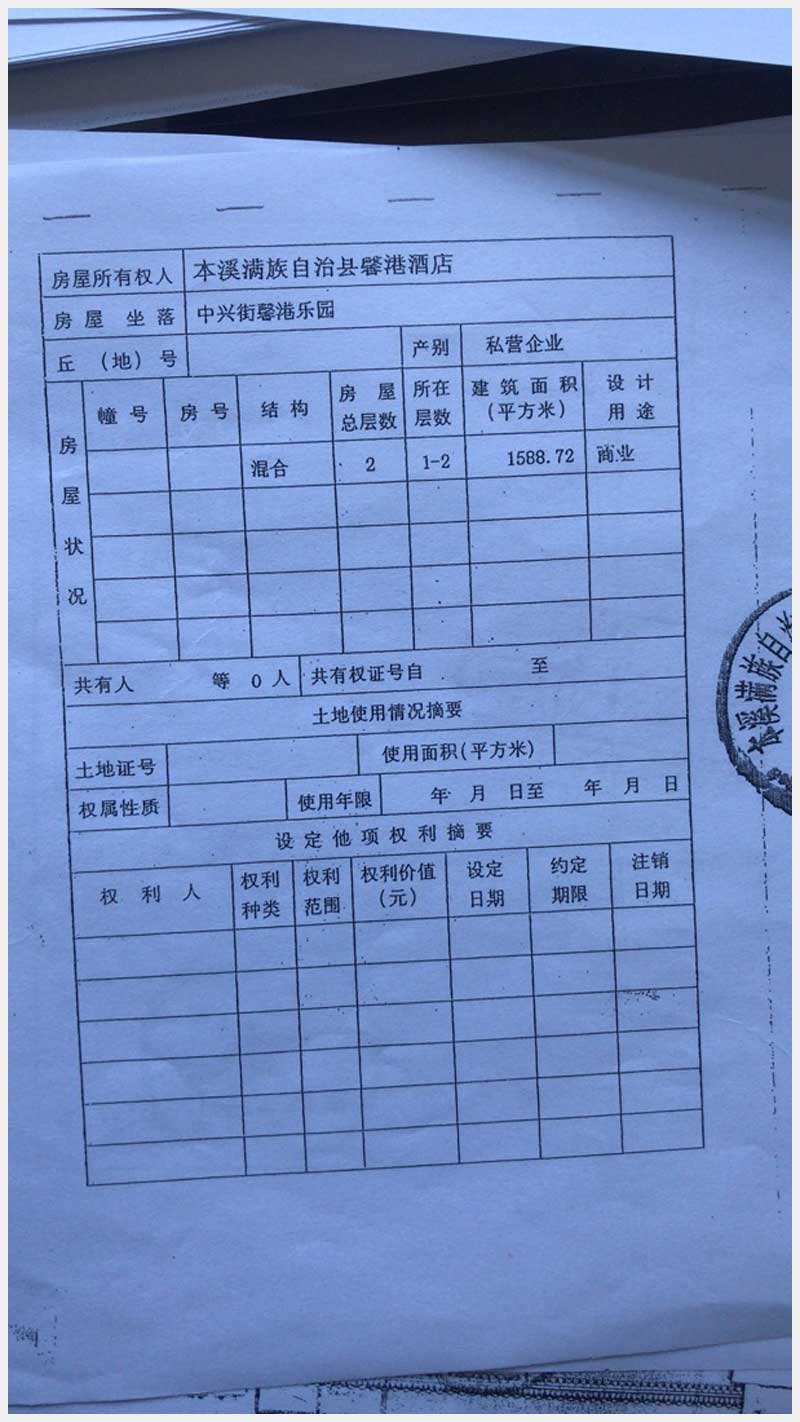 79號 本溪滿族自治縣中興街馨港樂園馨港酒店房產及土地