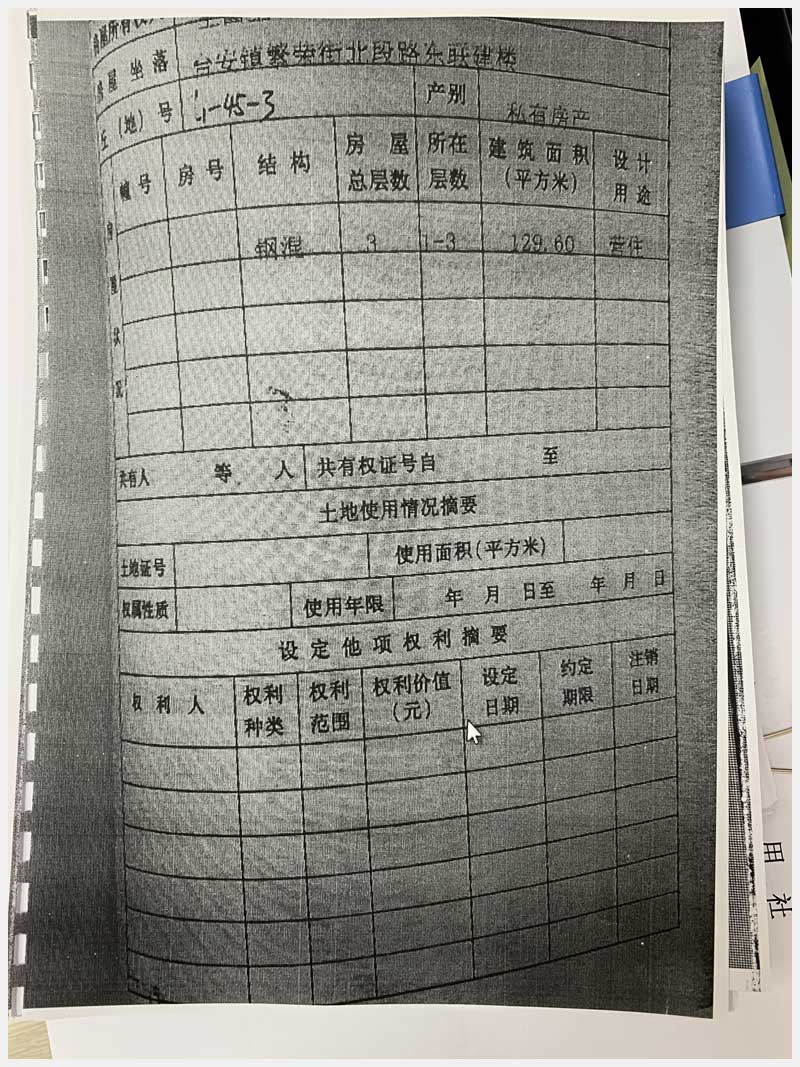 名稱:臺安縣繁榮街北段路東聯建樓 面積:129.6㎡ 瀏覽次數:1246