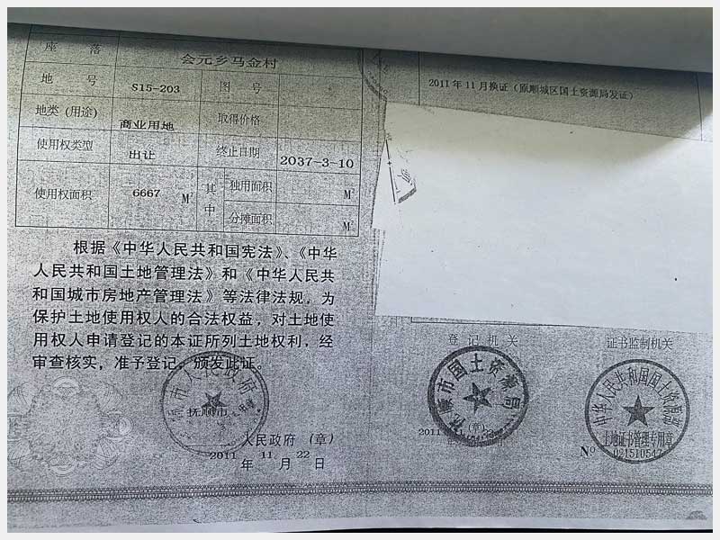 7號 撫順市順城區會元鄉馬金村土地使用權
