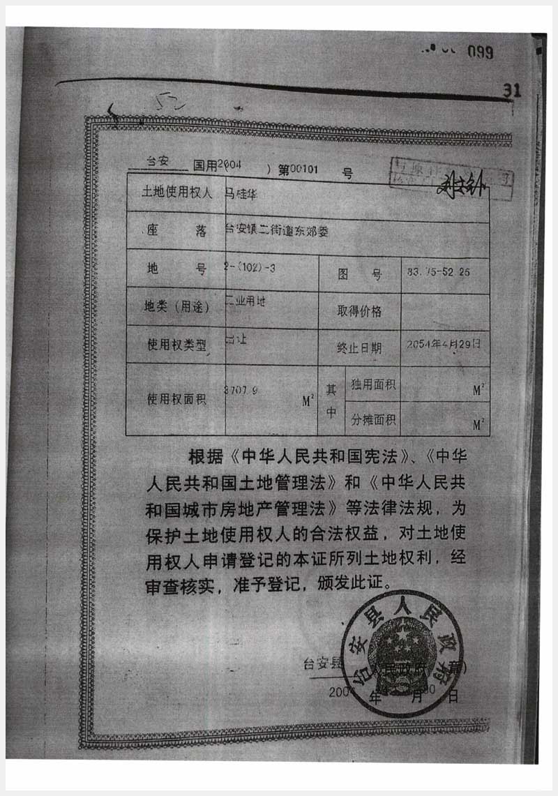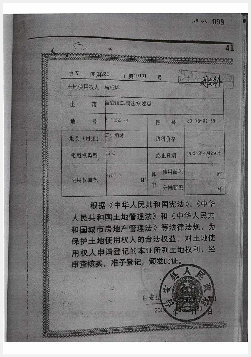 名稱:臺安縣臺安鎮勝利路北燃料公司后2處房產及工業用地 面積:房產:1677㎡;土地:3707.9㎡ 瀏覽次數:1272