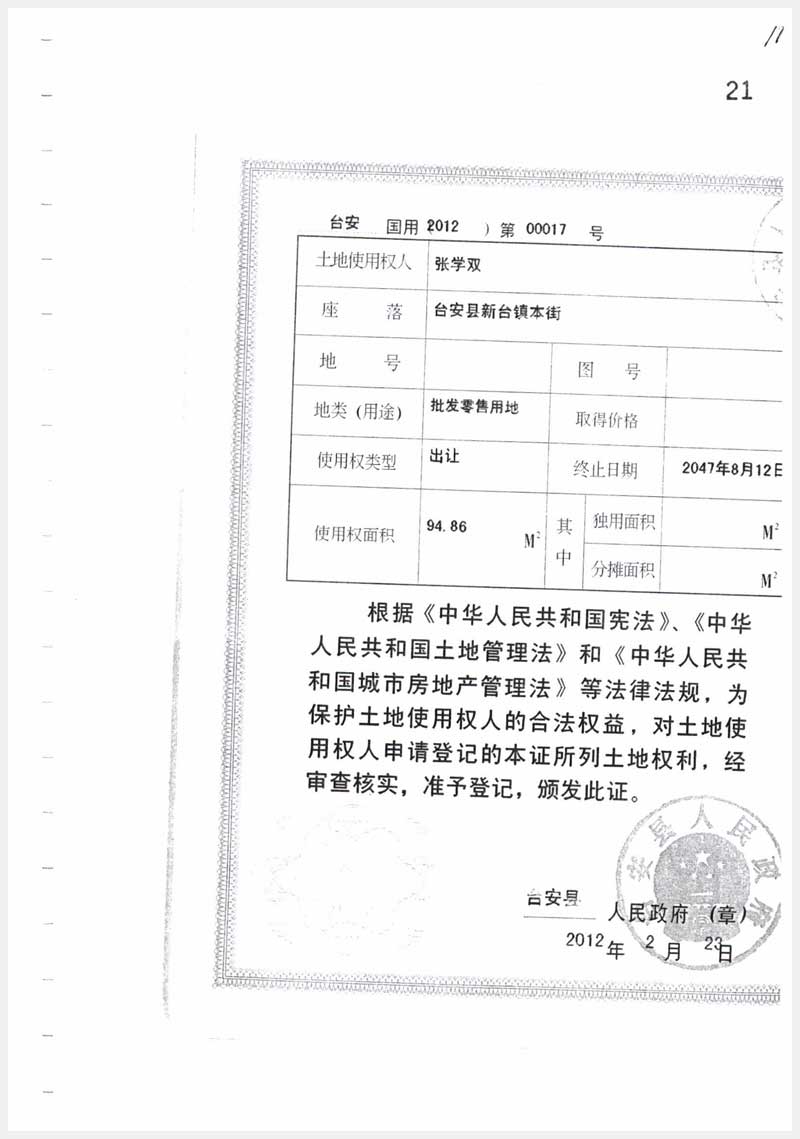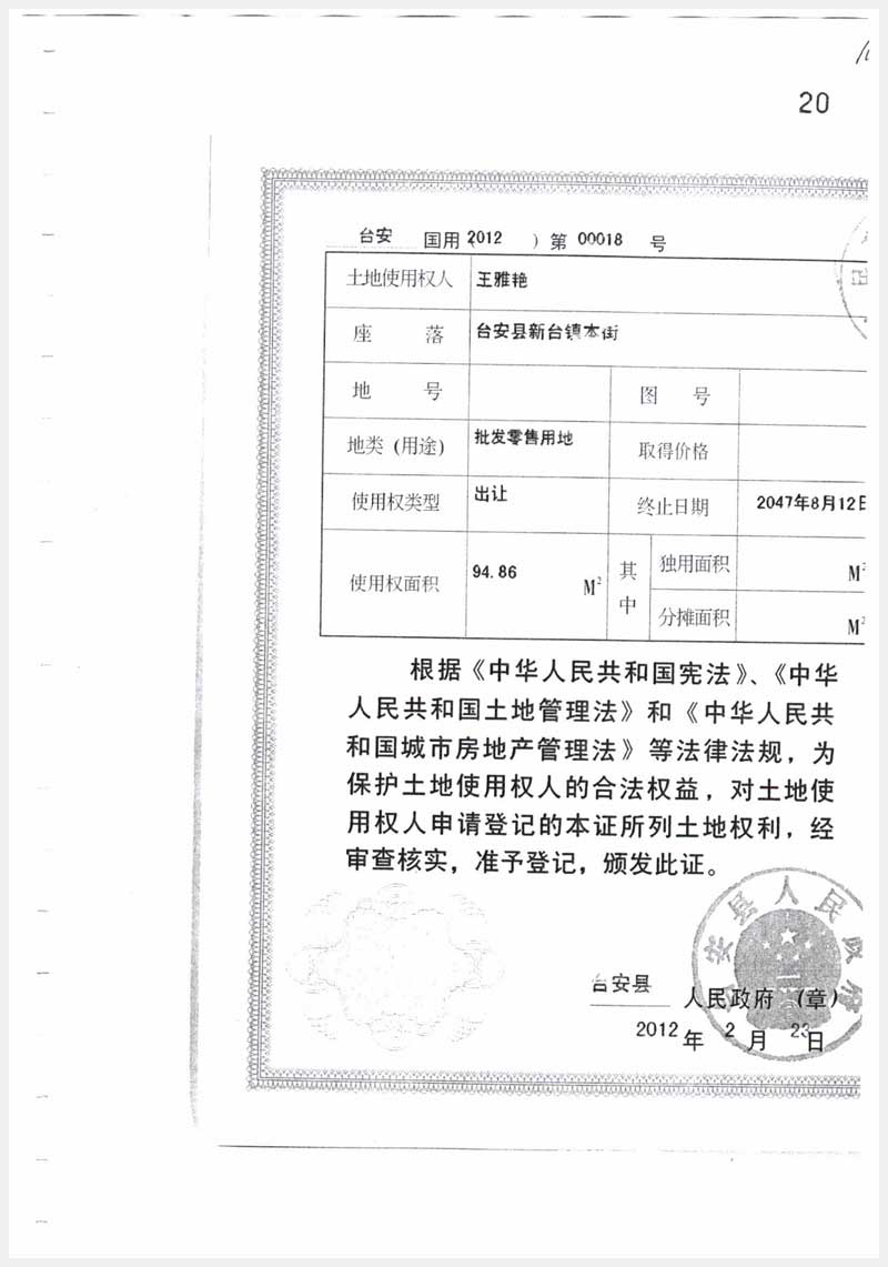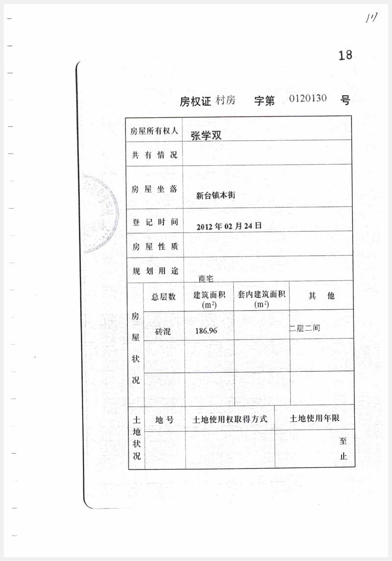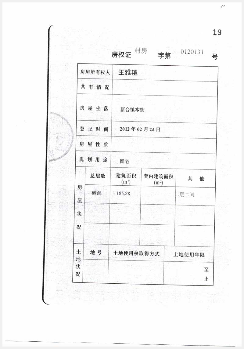 名稱:臺安縣新臺鎮本街2處房產 面積:185.88㎡、186.96㎡ 瀏覽次數:1182