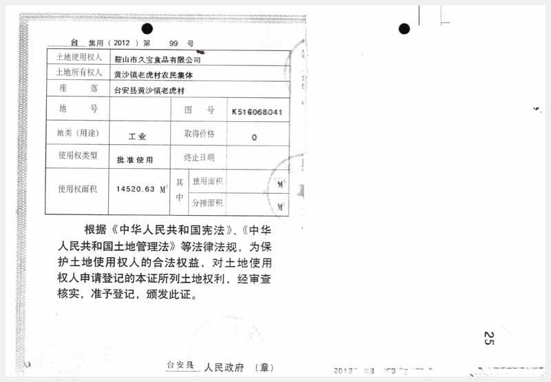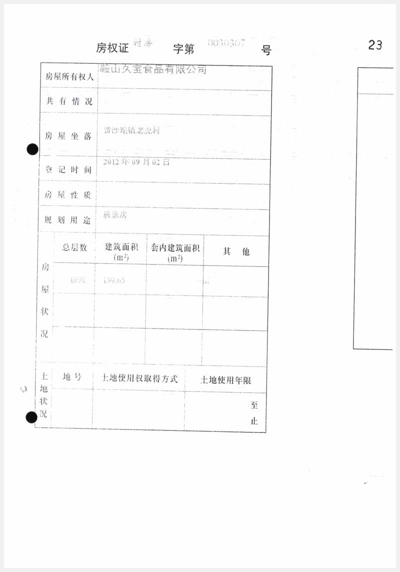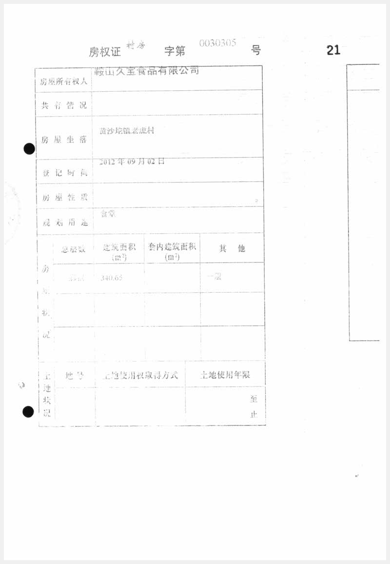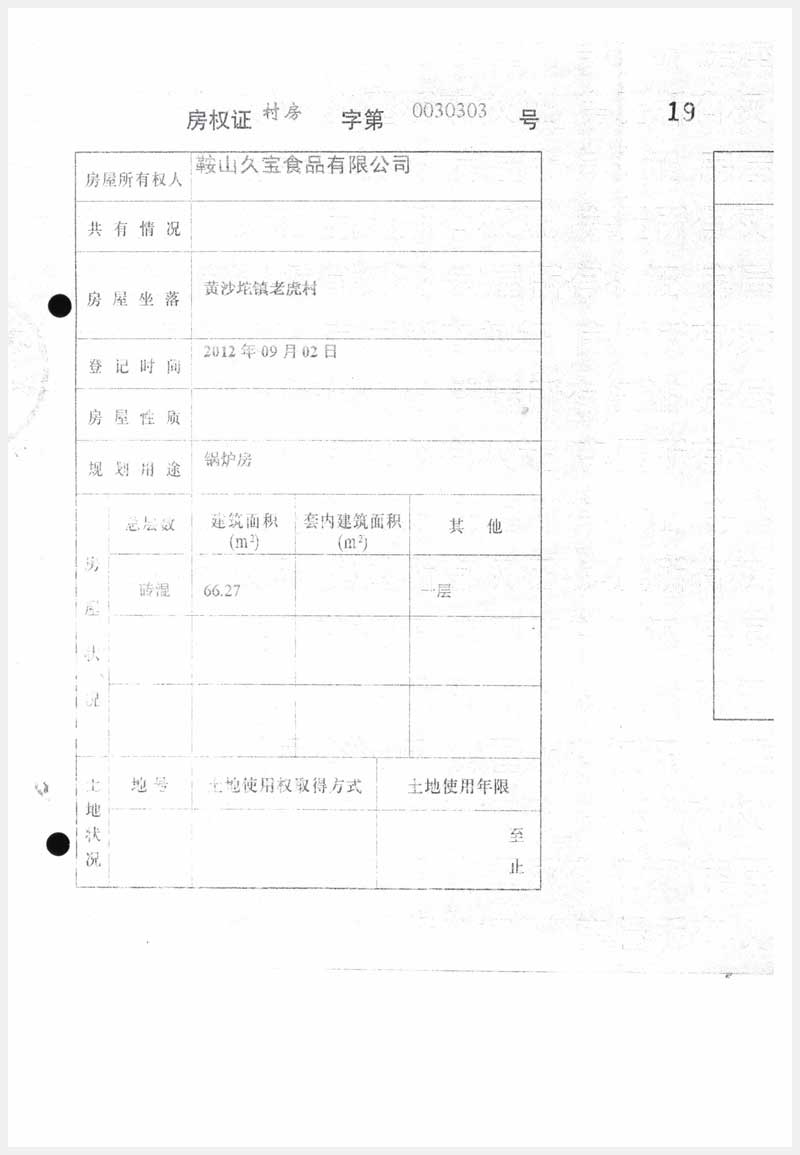 名稱:臺安縣黃沙坨鎮老虎村房產及土地使用權 面積:房產:6178.13㎡;土地:14520.63㎡ 瀏覽次數:1055