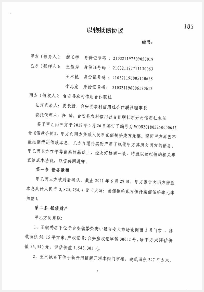 113-1號 臺安縣新開河鎮新開河本街房產及集體土地使用權